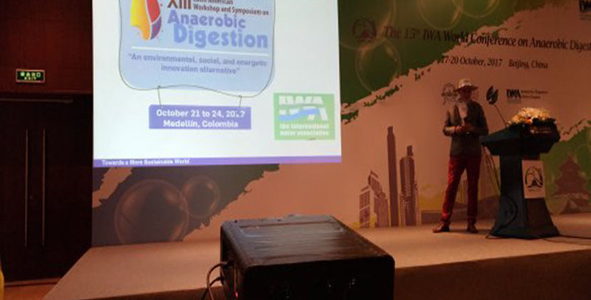 From October 17 to 20, 2017, the 15th IWA World Conference on Anaerobic Digestion was held in Beijing, China, this time the professors Jhonny Isaac Pérez from the University of La Guajira, the professor Diana Catalina Rodriguez from the University of Antioquia and the graduate student Jaime Jaimes Estévez of the Universidad Industrial de Santander, made the dissemination of DAAL XIII. On this occasion the promotional brochures of the event were delivered, the invitation video was presented and there was an opportunity to share with some members of the international and scientific organizing committee; Juan Lema, Adalberto Noyola, Maria Angeles de la Rubia, Jules Van Lier and Damien Batstone.